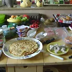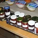 Le Castillon hotel serves a vegetarian breakfast featuring fresh fruits and fresh pastries.